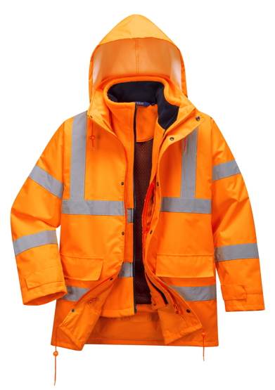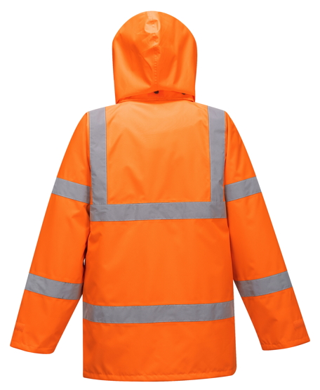 Normy EN: "EN ISO 20471 Class 3", "RIS 3279 TOM Issue 2 (Orange Only)", "EN 343 Class 4:3 X (WP 10, 000mm MVP 10, 000g/m2/24hrs)"