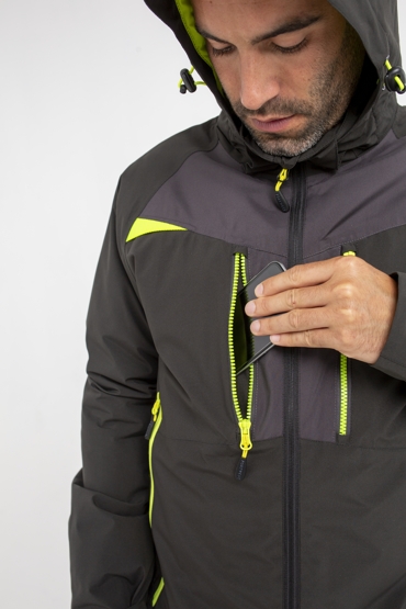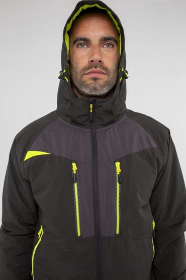 Kurtka zimowa DX4 wykorzystuje dynamicznie rozciągliwą i wysoce izolującą tkaninę stretch, która gwarantuje ciepło i komfort. Ergonomiczny profil i raglanowe rękawy pozwalają na nieograniczony zakres ruchu i większą swobodę. Dłuższa długość pleców, mankiety i regulowany kaptur zapewniają dodatkową ochronę przed żywiołami.